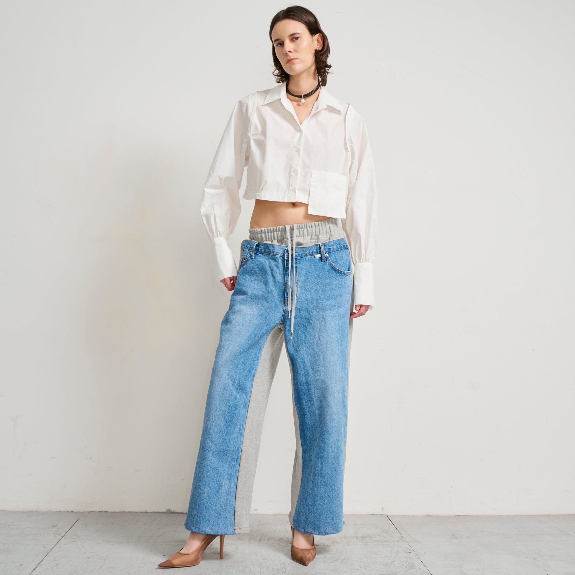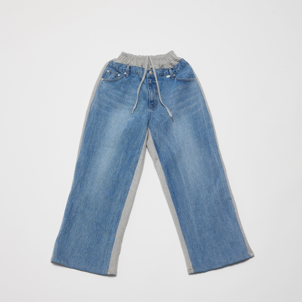 Sweatpants and jeans combined with the belt loops and back pocket detailing.