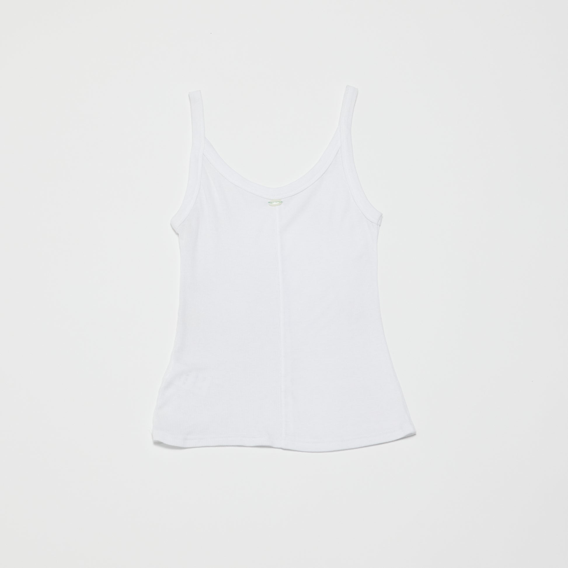 Light cotton tank top features in half ribbed and half plain textiles. The sophisticated wardrobe essential effortlessly pairs with a suit or denim look.