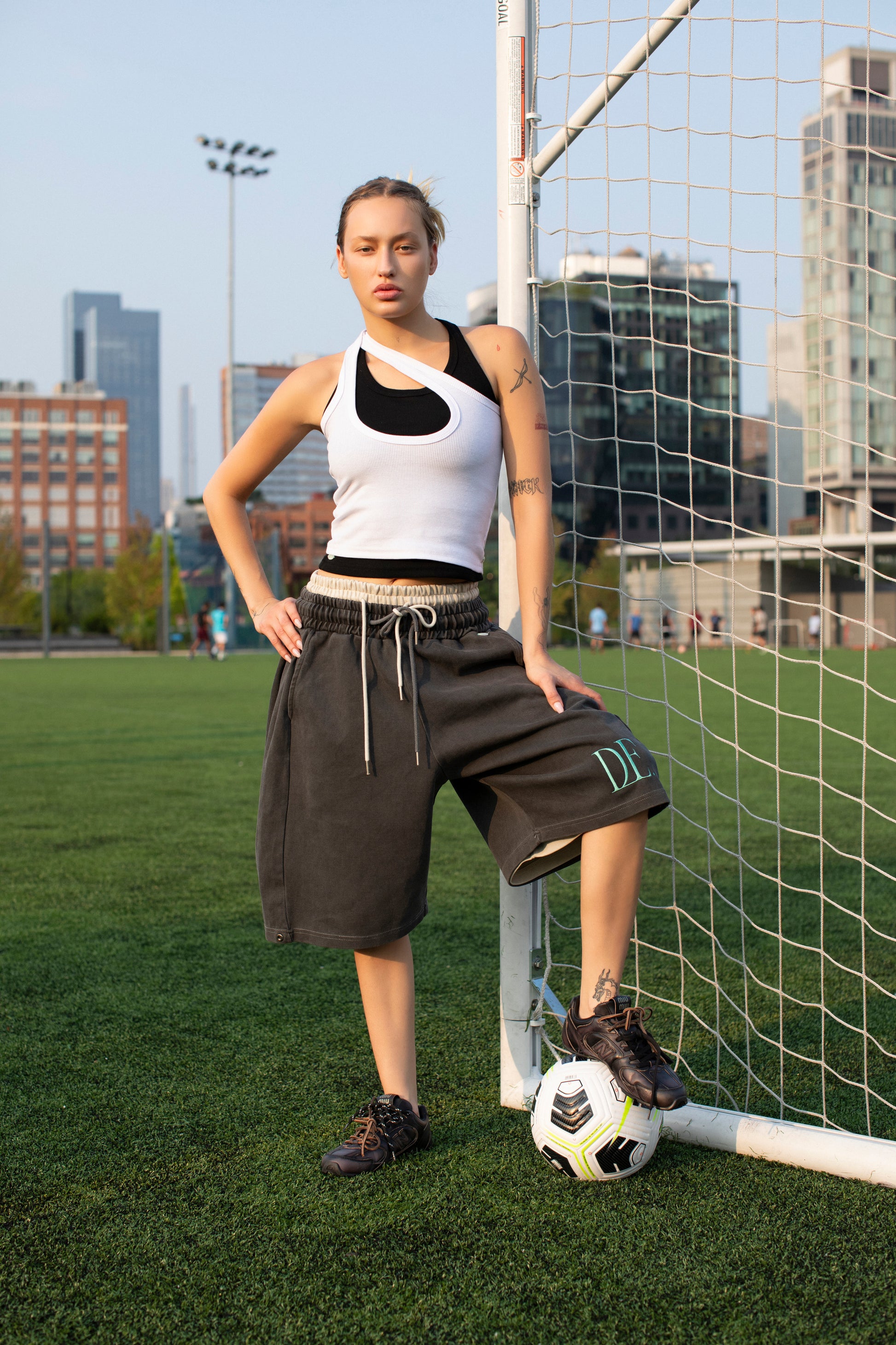 Fitted cropped tank top features a twisted accent on the back. Can be styled in multiple ways by crossing the straps asymmetric side.
