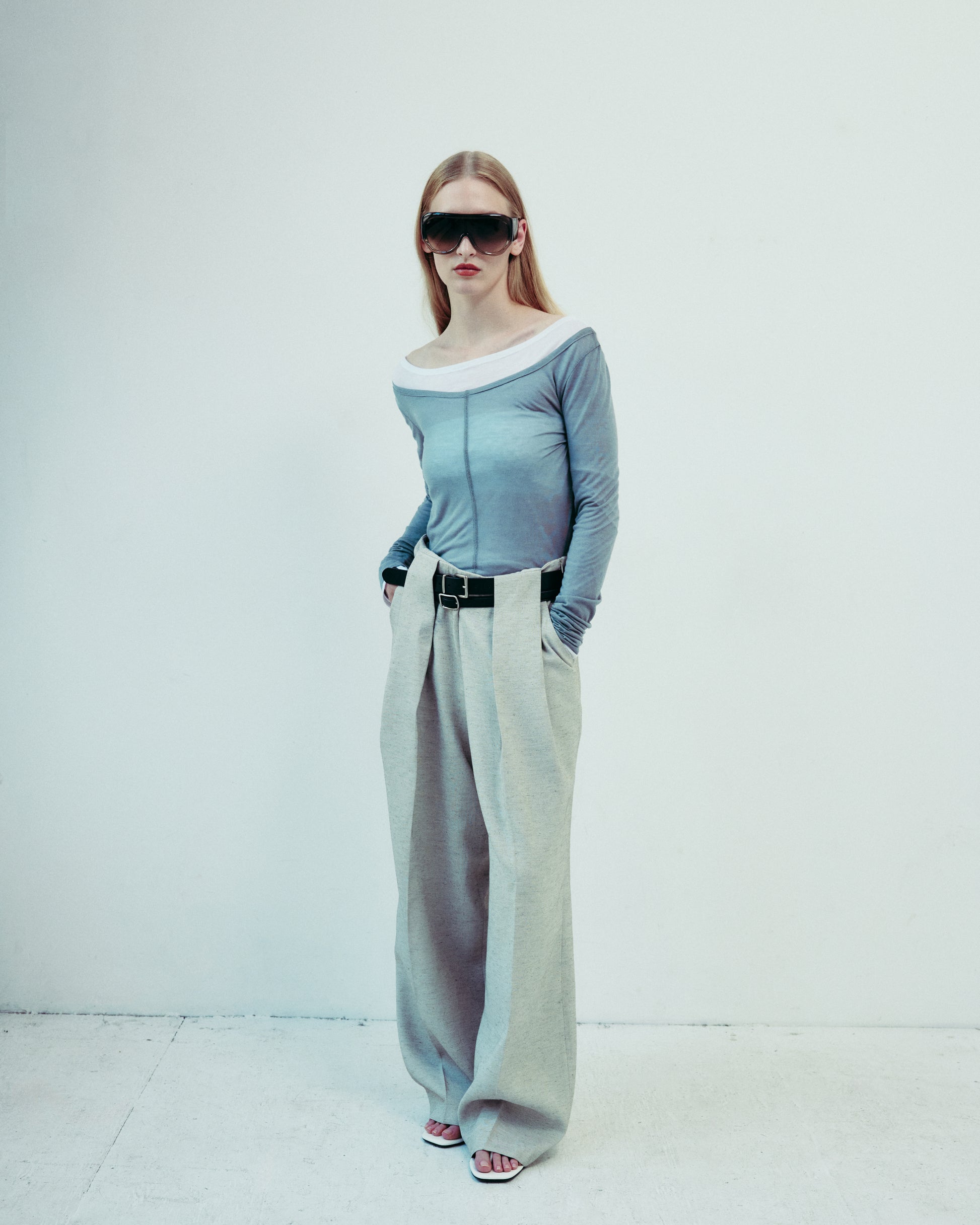 These tailored pants come complete with a thick belt at the waist, adding a bold, structured detail to the sleek silhouette. Crafted from high-quality fabric, they combine comfort and style, making them perfect for elevating any outfit with a modern, polished finish.