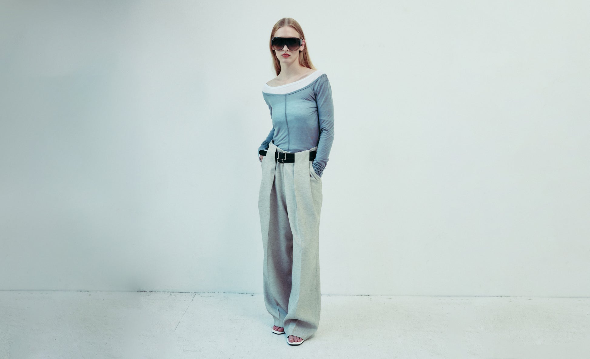 A delicate take on an everyday essential — this sheer long sleeve tee features a subtle scoop neckline with layered binding and soft exposed seams that add just the right amount of edge. Crafted from an ultra-lightweight, semi-transparent jersey, it hugs gently with a barely-there feel. Designed with extra-long sleeves and thumbhole details for a slouchy, styled look. Perfect for layering or wearing off the shoulder for an effortless, undone vibe.