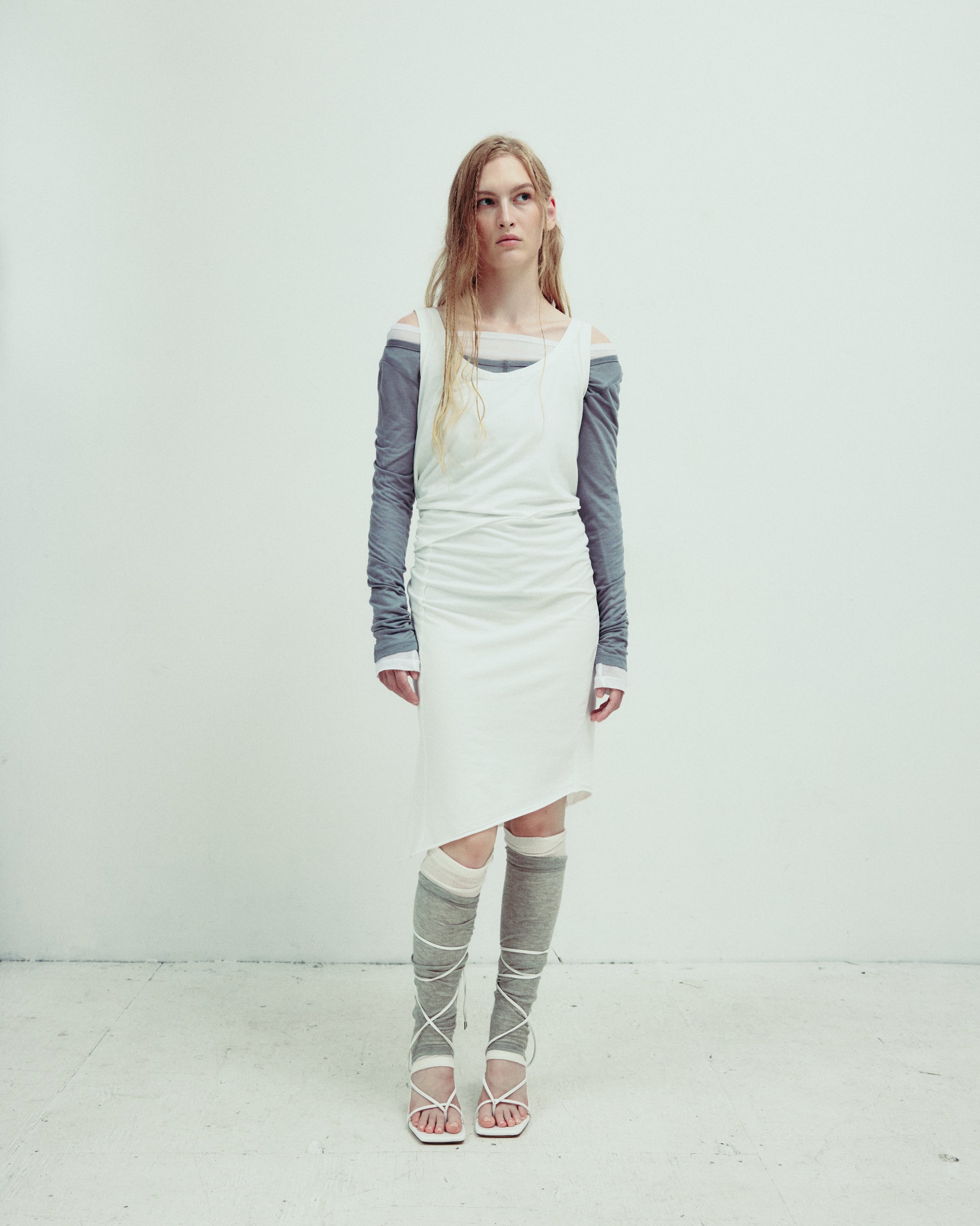 A dreamy take on effortless dressing — this ultra-soft white cotton dress features a lightweight bias cut that drapes beautifully on the body. Designed with four delicate top straps, it offers endless styling options: tie it halter-style, over-the-shoulder, criss-crossed, or off one shoulder for a touch of romance. The asymmetrical hem adds movement and a modern twist to this timeless silhouette. Perfect for slow mornings, sunset dinners, or barefoot moments
