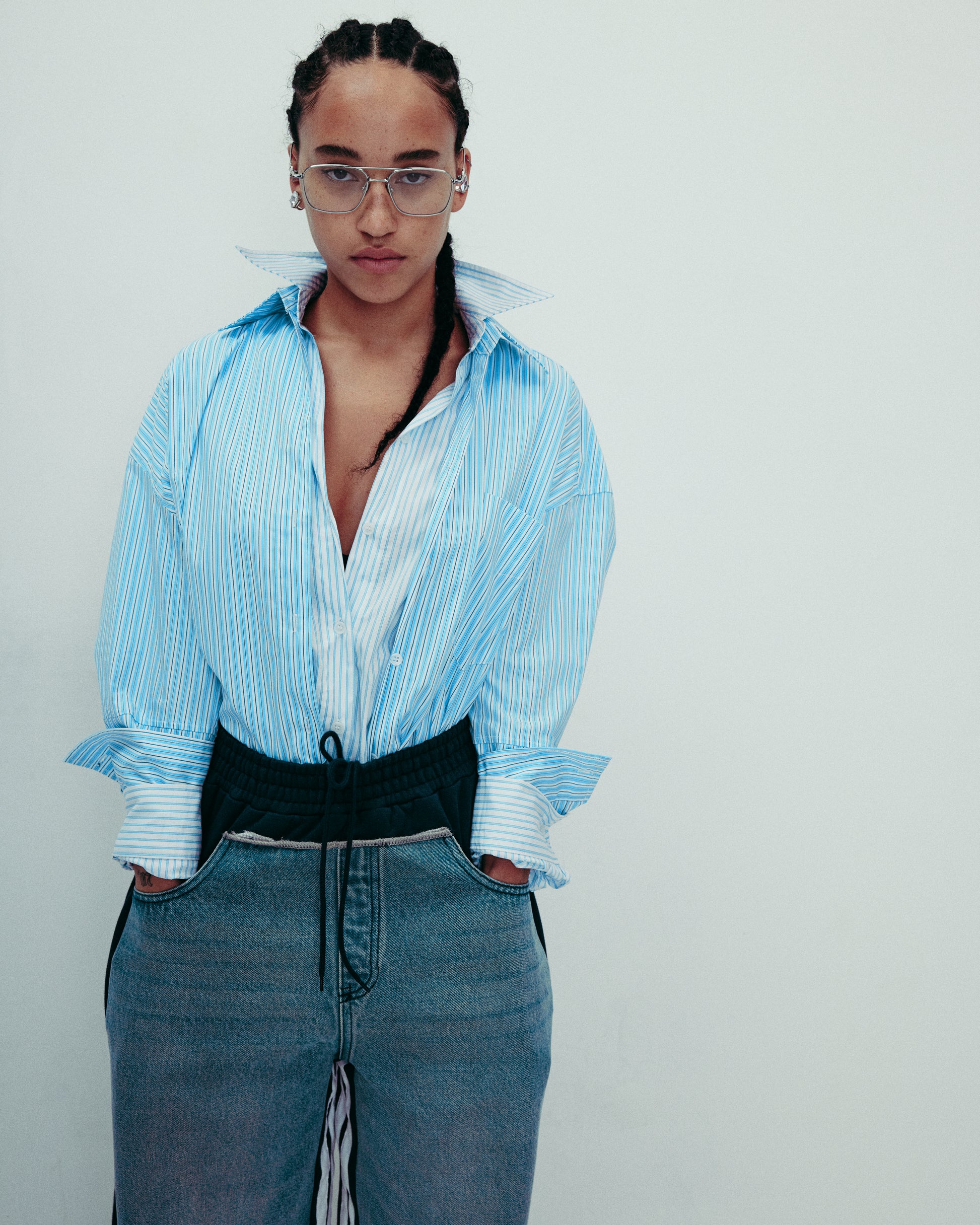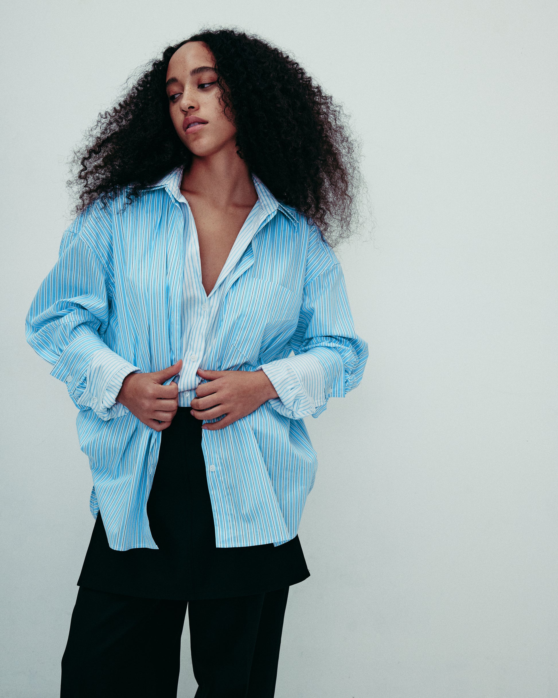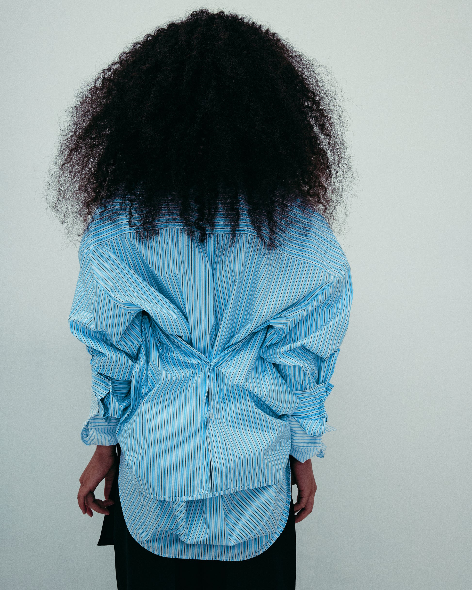 This versatile double-layered striped blouse offers a fresh take on a classic pattern with its unique construction. The double-layer design not only adds visual depth and interest to the stripes but also creates opportunities for diverse styling. Play with the layers to achieve different looks – perhaps tying the top layer for a cropped effect, letting it drape loosely, or even tucking or knotting in various ways to highlight the underlying stripes. This blouse is a stylish and adaptable piece that allows you to express your individuality through its multiple styling possibilities.